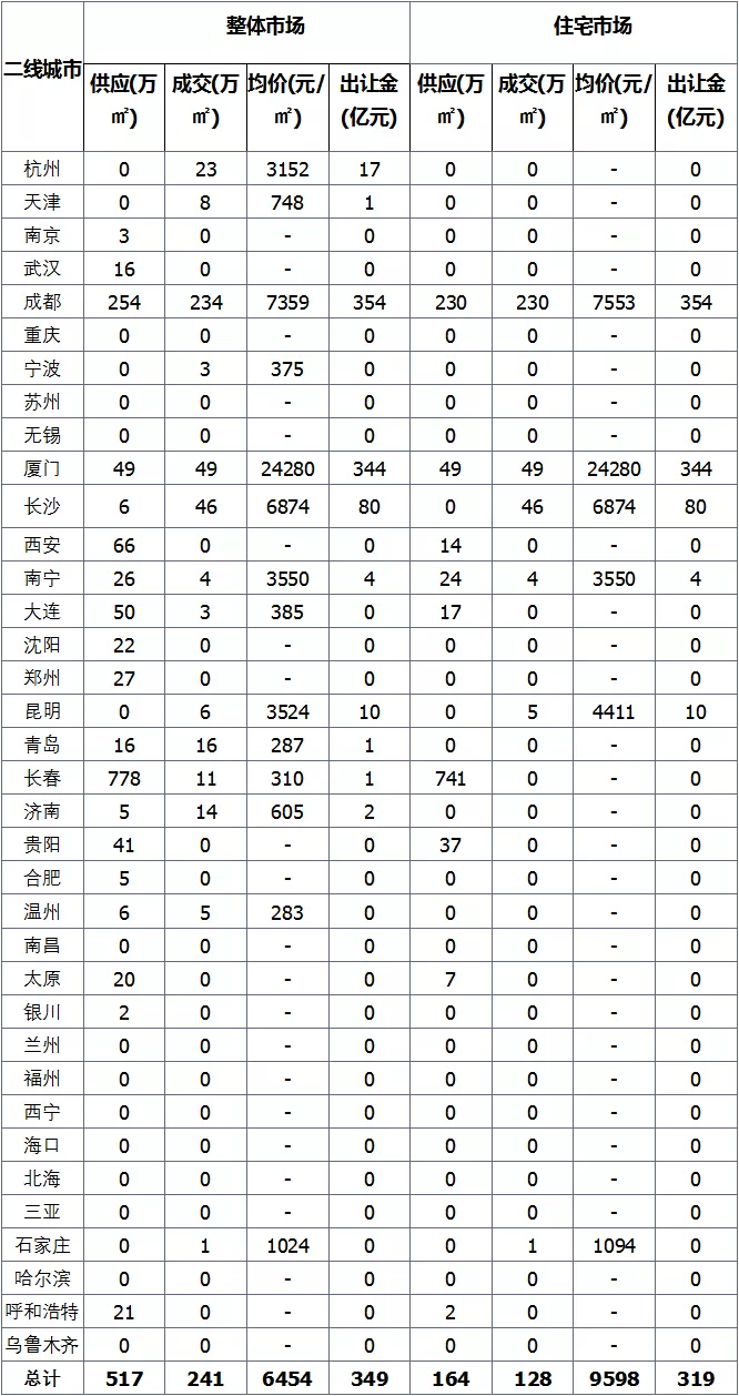 土地丨整体供应量环比翻番,成都收金逾354亿领衔
