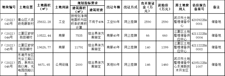 总起始价6109万元!武汉4宗地挂牌 涉及江夏区2宗商服用地