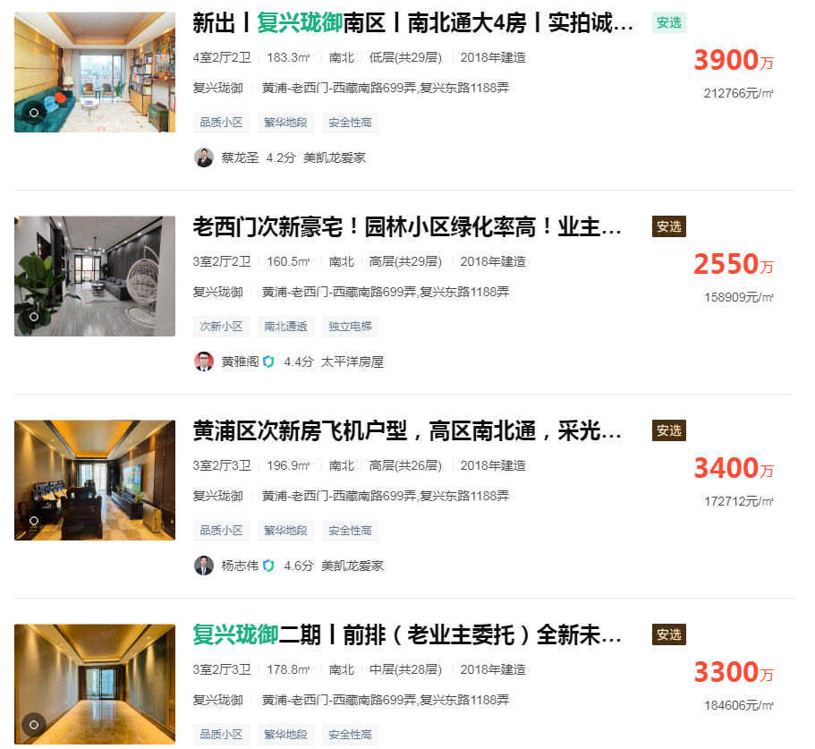 以复兴珑御为例,目前该项目在第三方平台挂出的二手房价格,与此次认购房源的备案价格每平方米相差2.3万-7.8万元,一二手房价格倒挂严重。