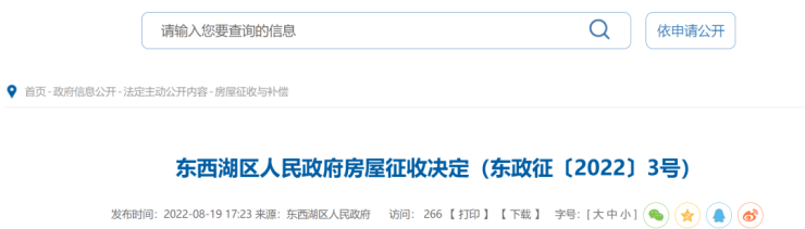 东西湖区人民政府房屋征收决定(东政征〔2022〕3号)