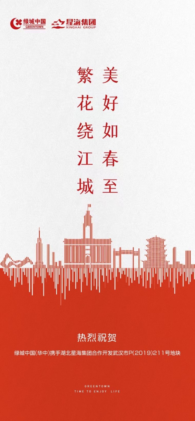 4月21日下午,一则海报刷爆武汉楼市朋友圈,海报上显示:“繁花绕江城 美好如春至 热烈祝贺绿城中国(华中)携手湖北星海集团合作开发武汉市P(2019)211号地块。”