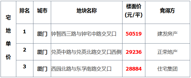 ▌宅地单价:榜单均价走高,厦门一城占据榜单九席全国住宅用地楼面单价三甲