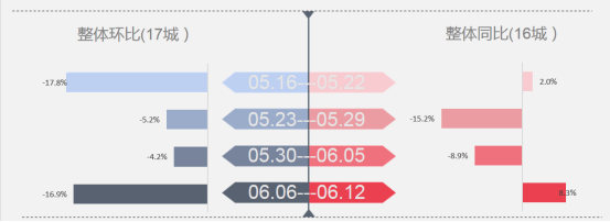 ▌周度整体:楼市整体成交下滑,环比降幅扩大