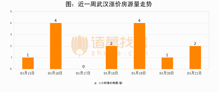根据诸葛找房数据显示,武汉24小时涨价房源量为2套,较04月20日增加1套,环比上涨100%。与此同时,涨价房源占比小幅扩大,业主信心有所提升。