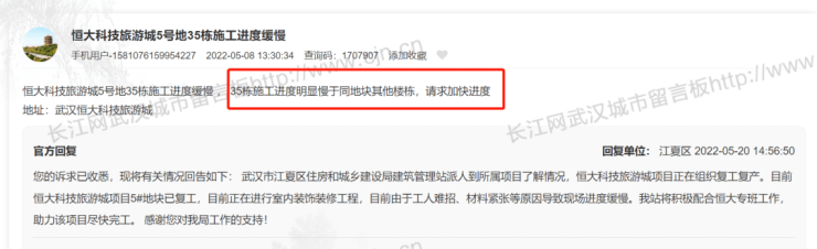 不过城市留言板上更多的是业主在问复工、交付以及房子建设进度问题。