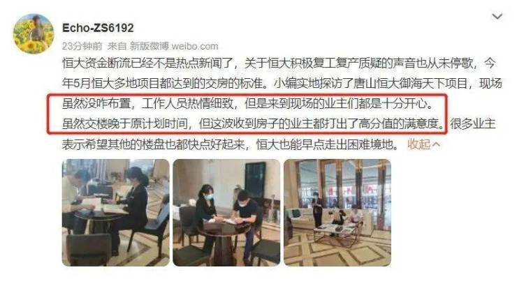 恒大能交付,本是个热点话题,自带流量,交付工作做好,是个很能赚口碑的事情。