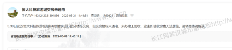 不过拼房姐从城市留言板上也看到了已经有恒大科技旅游城业主在反映房子交了但没有通电,无法入住。