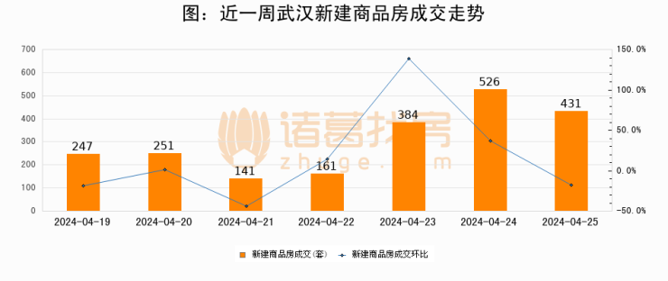 【武汉成交日报】04月25日新房成交431套;涨价房源129套