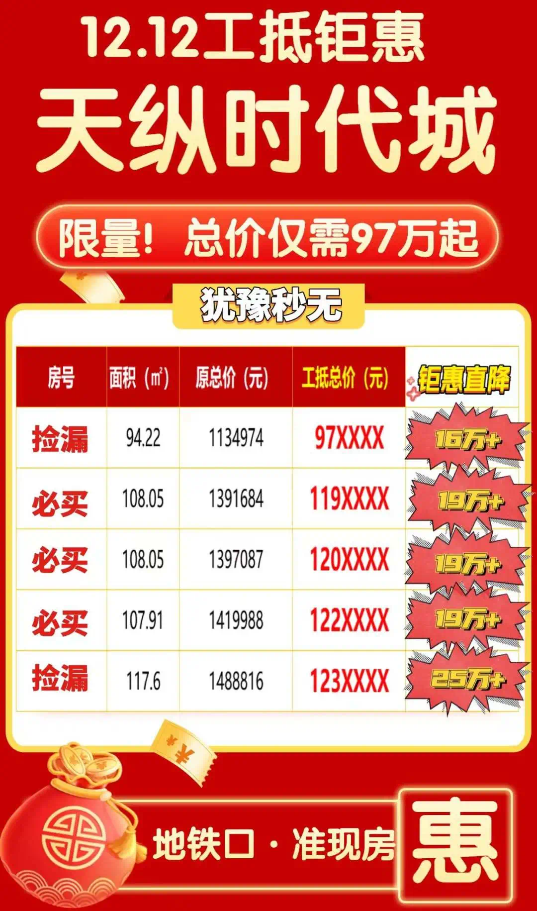 天纵时代城位于武汉轻轨1号线汉口北站旁,项目不限购。近期推出折扣优惠,总价仅需97万起。