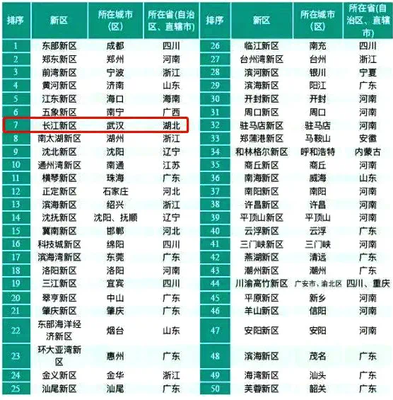 此次榜单中武汉-长江新区是湖北省少有1个上榜的区域,排名全国第7。