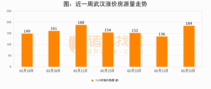 根据诸葛找房数据显示,武汉24小时涨价房源量为184套,较05月24日增加48套,环比上涨35.3%。与此同时,涨价房源占比小幅扩大,业主信心有所提升。