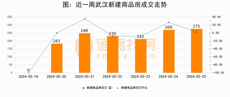 【武汉成交日报】05月25日新房成交275套;涨价房源184套