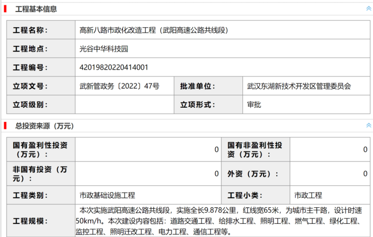 日前,武汉市公共资源交易中心挂出《高新八路市政化改造招标项目》登记信息,高新八路市政化改造正式启动招标!