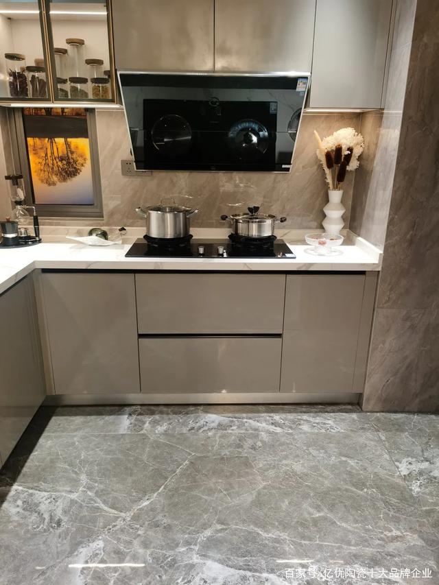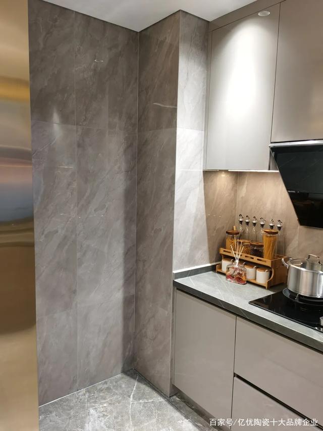 厨卫墙面使用金科现代瓷砖「FD612LB320」,灵动飘逸的纹理,勾勒出丰富而高级的层次感。