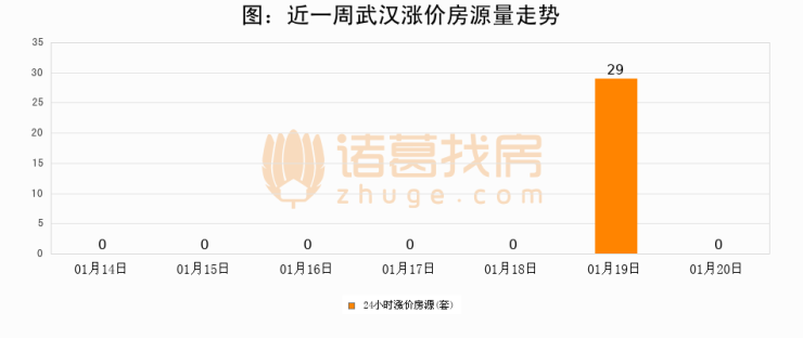 根据诸葛找房数据显示,武汉24小时涨价房源量为0套,较01月19日减少29套,环比下降100%。与此同时,涨价房源占比小幅回落,对于购房者来说是一个入市窗口期,购房者可抓住时机入市。