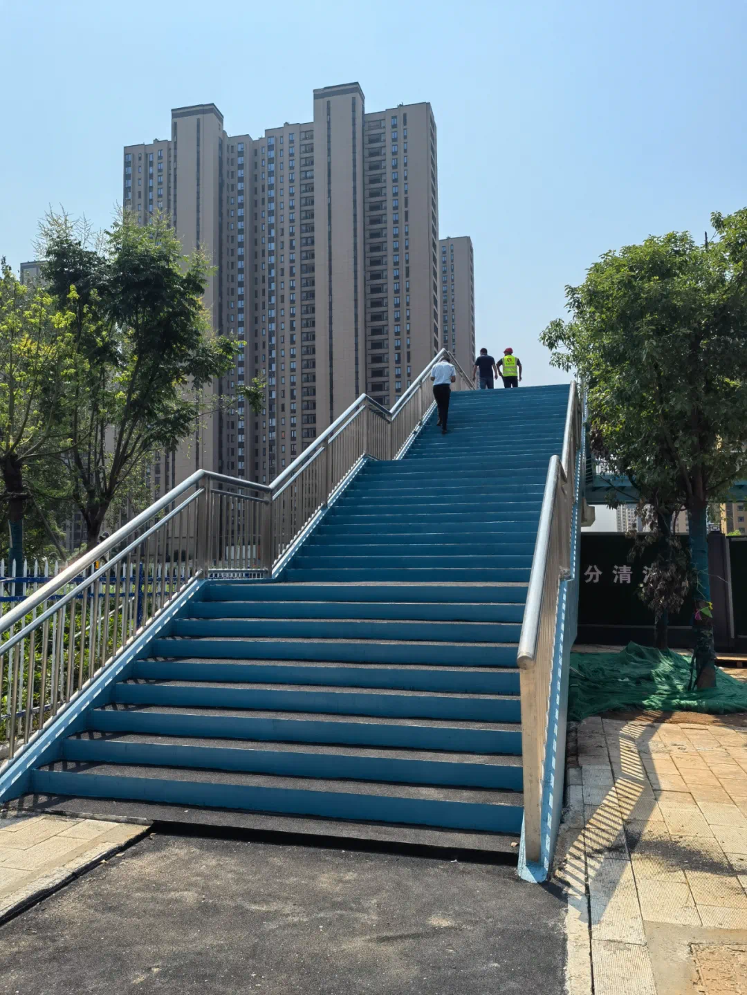 现在人行天桥通行后从南侧到北侧步行的话几分钟就能够穿过去节省一半的时间绕行变直线,省时又安全天桥宽8米,穿行很丝滑