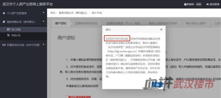 6月20日,打开武汉市个人房产业务网上服务平台就会发现,提示弹窗明确写着“自2022年6月20日起......”,预示着6月20日的确是一个“分水岭”。