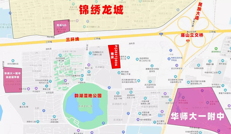 土地情况:项目位于东湖高新区华师一附中华师园路西,该地块是南山在今年6月29日集中土拍中拿下的P(2021)036号地块;楼面地价约15986元/平,溢价率高达100%,是民族新城板块新地王!