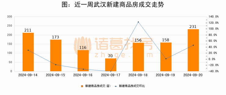 【武汉成交日报】09月20日新房成交231套;涨价房源8套