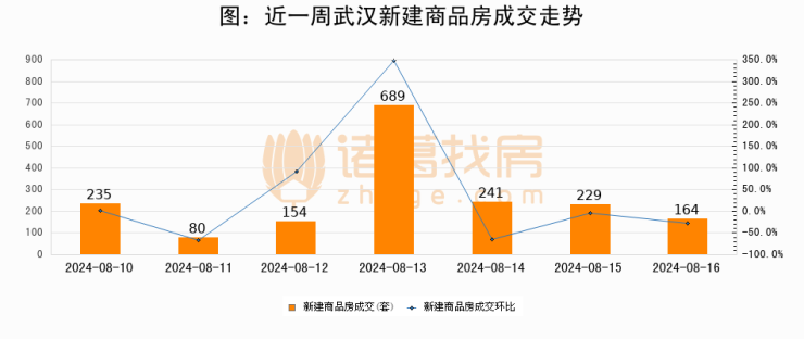 【武汉成交日报】08月16日新房成交164套;涨价房源34套