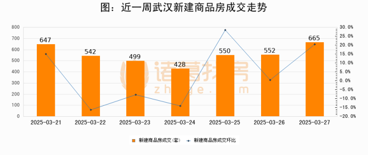 根据武汉市住房保障和房屋管理局数据显示,2025年03月27日武汉新建商品房成交665套,较昨日增加113套,环比上涨20.5%