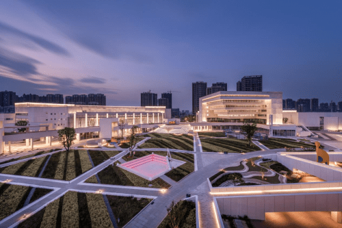 据了解,武汉临空港文化中心毗邻码头潭文化遗址公园、中央明渠樱花溪公园、径河公园。将生态和文化活动优质结合,独有的格局形成天然幻影画图。从天空俯瞰,仿佛是 “文化之眼”点缀其中。