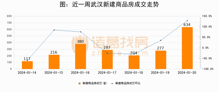 【武汉成交日报】01月20日新房成交634套;涨价房源115套