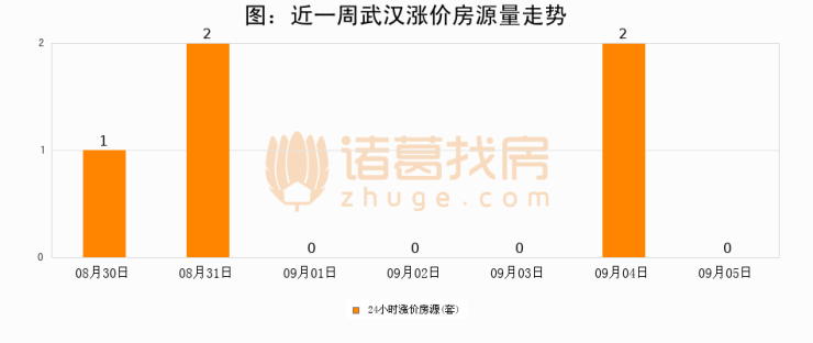 根据诸葛找房数据显示,武汉24小时涨价房源量为0套,较09月04日减少2套,环比下降100%。与此同时,涨价房源占比小幅回落,对于购房者来说是一个入市窗口期,购房者可抓住时机入市。