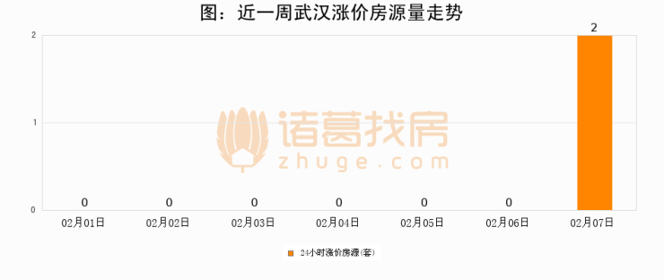根据诸葛找房数据显示,武汉24小时涨价房源量为2套,较02月06日增加2套,环比上涨0%。与此同时,涨价房源占比小幅扩大,业主信心有所提升。