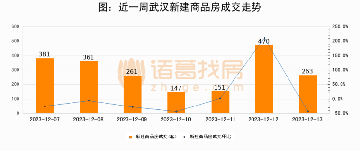 【武汉成交日报】12月13日新房成交263套;涨价房源171套