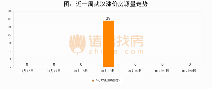 根据诸葛找房数据显示,武汉24小时涨价房源量为0套,较01月21日持平。