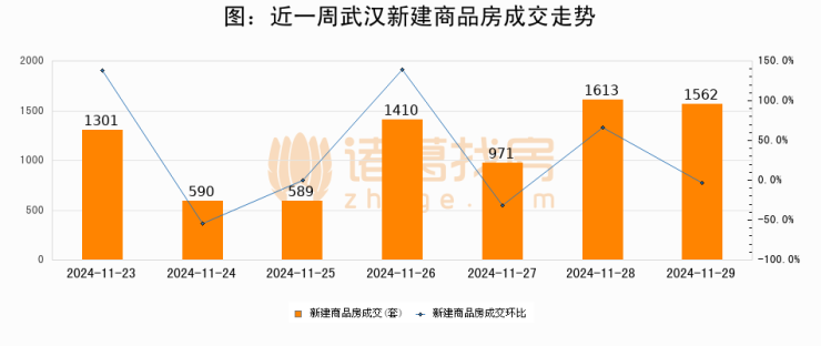【武汉成交日报】11月29日新房成交1562套;涨价房源28套
