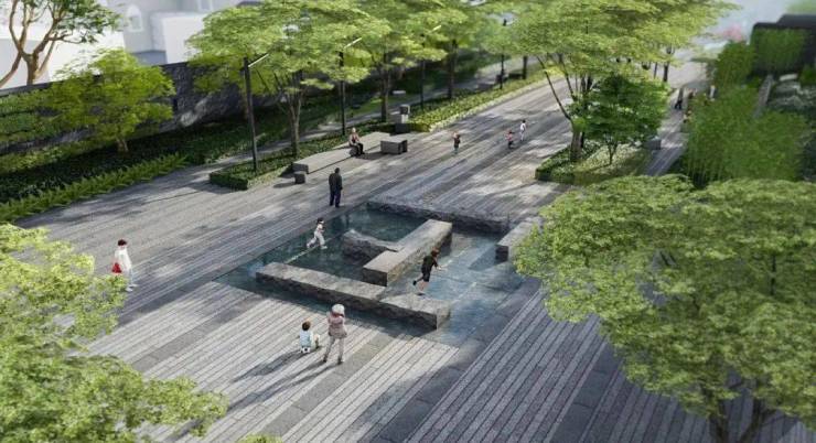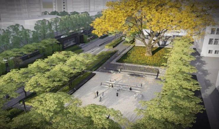古树广场以“汉阳树”为核心,三面种植高大的树木用来遮阴。留白广场,分区灵活,设立步道,座椅等设施。“树下的石阶可作为舞,形成一个露天演绎剧场,同时还可以作为一个户外艺术展厅,供市民把汉阳树为题材进行文艺创展。”设计团队负责人表示。