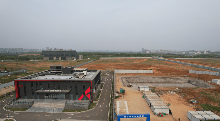 在武汉人工智能计算中心南侧,占地14亩的超算中心项目已打围施工,挖掘机正在作业,现场临建、场平等正在施工,项目总投资10亿元,预计今年9月建成投入使用。