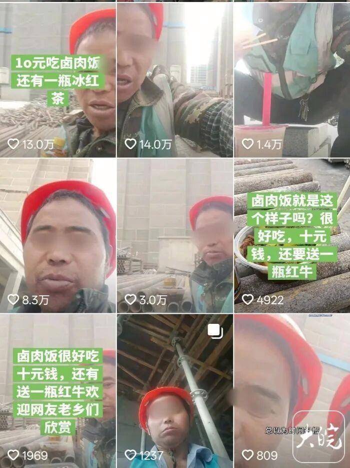 两天后,他更新了一条在工地门口摆摊卖卤肉饭的视频。此后,更新趋于常态化。视频中,来就餐的多为工人,饭菜分量大,价格多为10元。