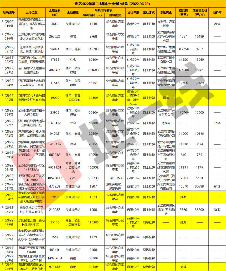 5.加油站地块竞争激烈,东西湖区P(2022)033号经过107轮竞拍成交,溢价率近61%。