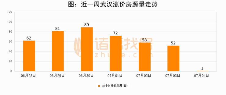 根据诸葛找房数据显示,武汉24小时涨价房源量为1套,较07月03日减少51套,环比下降98.1%。与此同时,涨价房源占比小幅回落,对于购房者来说是一个入市窗口期,购房者可抓住时机入市。