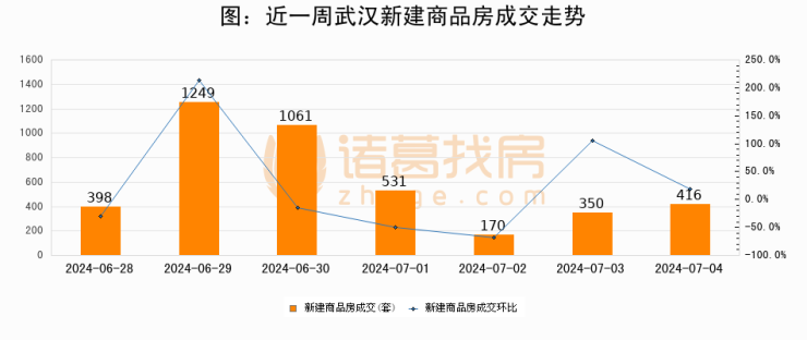 【武汉成交日报】07月04日新房成交416套;涨价房源1套