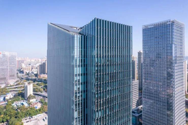 裙楼部分则采用了特殊玻璃材质和独特的分割设计,外观层次分明,与塔楼形成了和谐统一的整体风格。