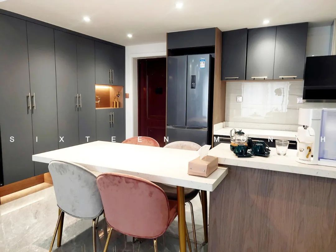 4、厨房台面做高低台,灶台台面低,炒菜不用架胳膊;水槽台面高,洗菜不用累断腰。