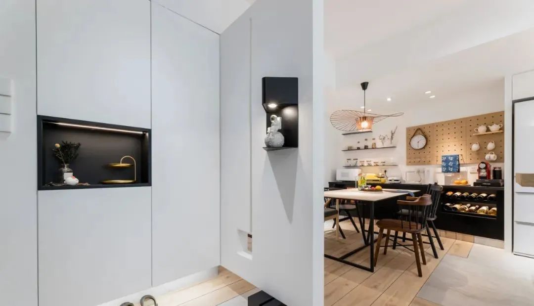1、餐边柜可以不大,但一定要装一个。餐边柜可以储物、备餐,减轻厨房和餐桌不少压力,让空间更加整洁干净。
