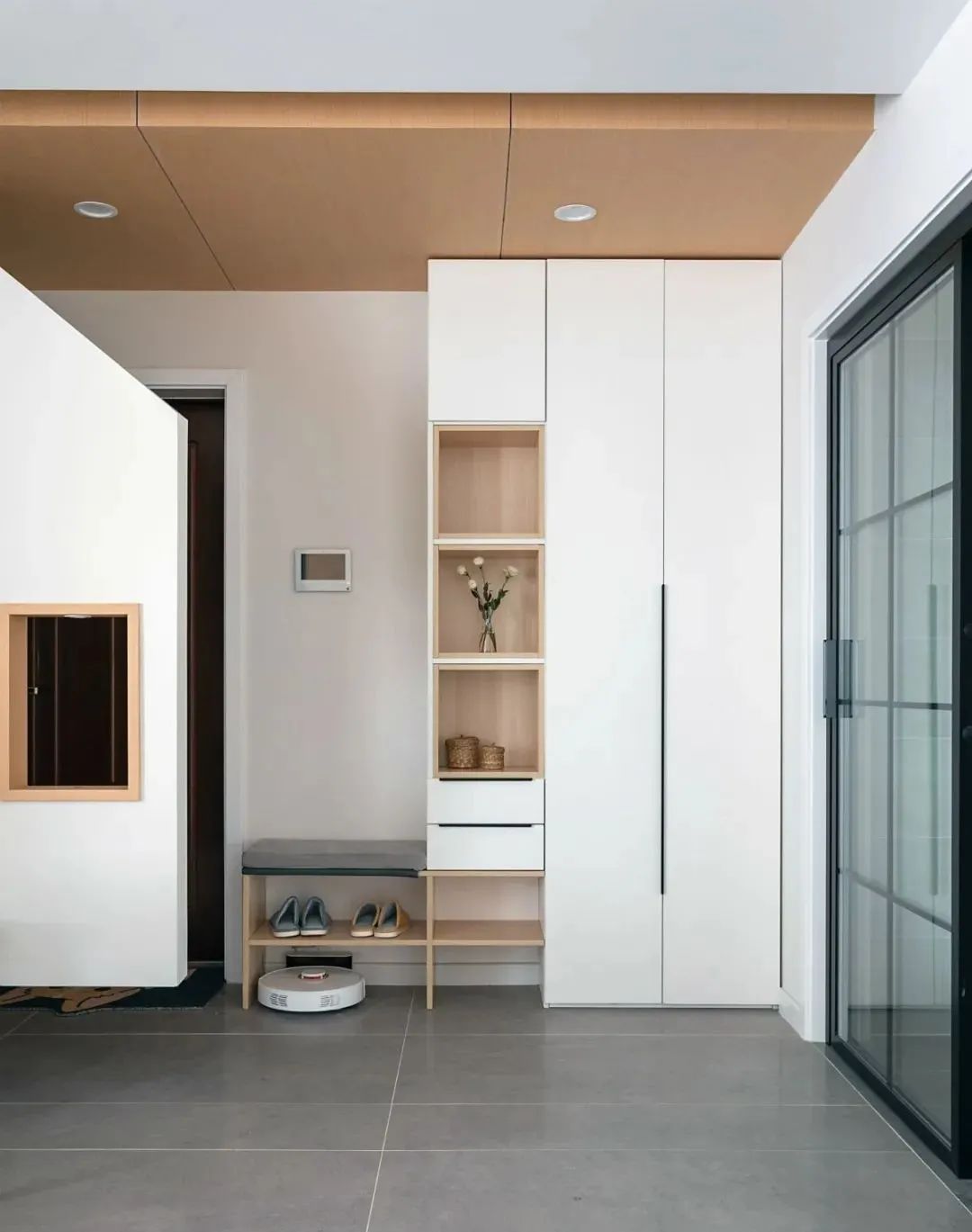 4、玄关柜记得预留插座,方便给充电宝和手机充电。