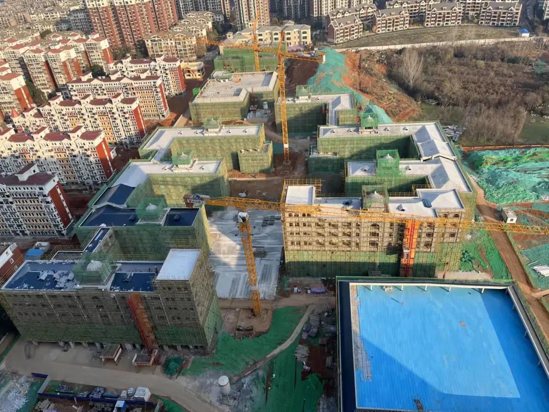 截至12月31日,项目整体形象进度完成约60%。主体结构施工全部完成,砌体施工进入收尾阶段;内外墙抹灰全面启动;相关水磨石、门窗、墙裙、屋面瓦、真石漆选型选样工作基本完成;地下室砌体抹灰全部完成,消防安装水、风系统管道、桥架系统的吊杆安装进入尾声,为保障明年室外施工顺利完成奠定了良好基础。