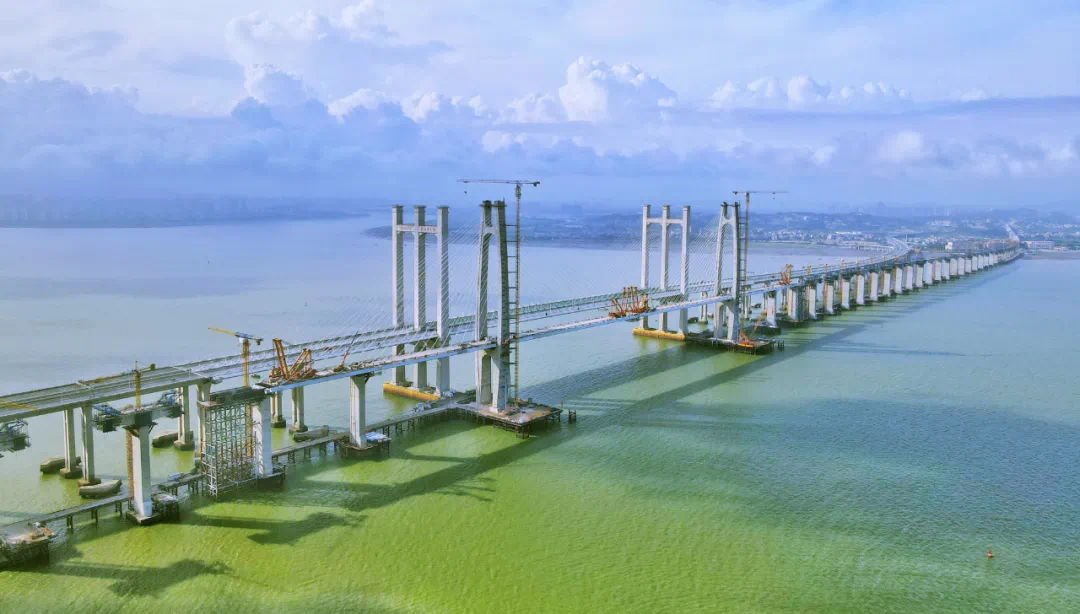 2021年8月6日由在汉央企铁四院设计、中交二航局承建的世界首座高铁跨海大桥——福(州)厦(门)高铁泉州湾跨海大桥合龙这是世界桥梁领域的里程碑工程大桥全长20.29公里有9公里跨越泉州湾中部海域为世界首座设计时速350公里的跨海高铁斜拉桥