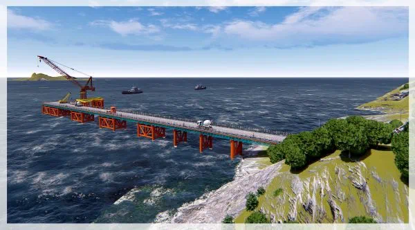 西堠门公铁大桥钢栈桥(含码头)效果图。大桥采用的斜拉悬索协作体系为国内大跨度桥梁首次采用大桥的建设使我国铁路桥梁跨越能力从千米级跃升至1500米级必将推动我国桥梁技术迈上新的台阶