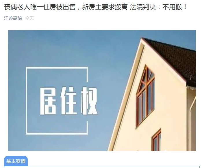 丧偶老人少有住房被出售,“新房主”要求搬离!法院判决:不用搬