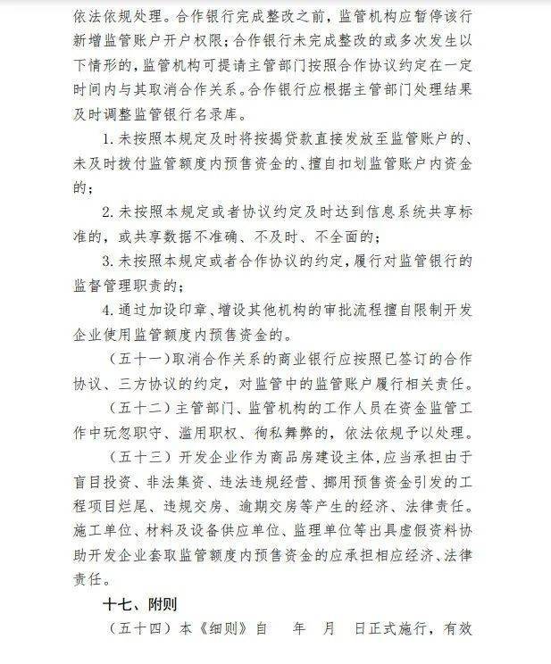 3、监管账户名称、账号信息应在商品房预售许可证、商品房买卖合同、按揭贷款合同上载明,并于商品房销售现场显著位置以及主管部门门户网站进行公示。