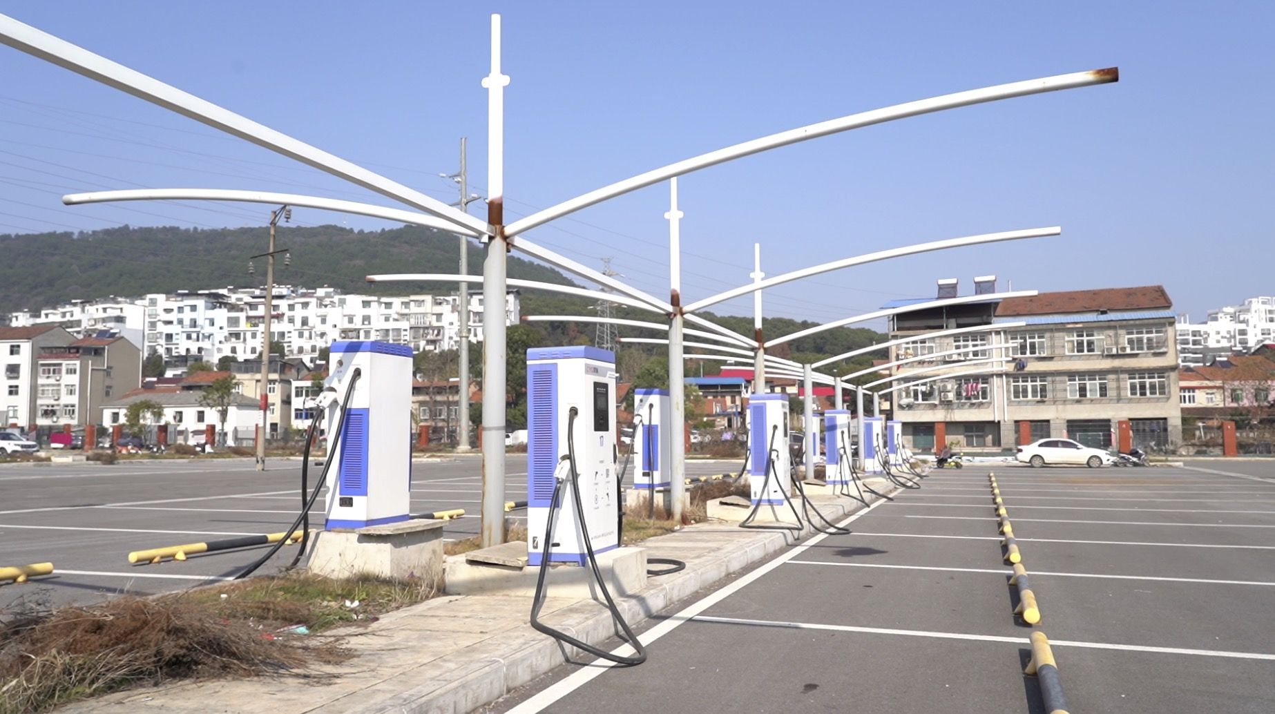 青龙村盐坊湾公交场站内新能源公交车充电桩。
