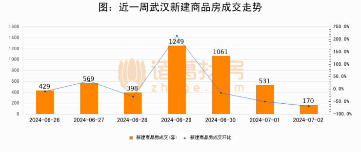 【武汉成交日报】07月02日新房成交170套;涨价房源58套
