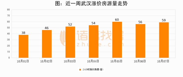 根据诸葛找房数据显示,武汉24小时涨价房源量为59套,较10月06日增加3套,环比上涨5.4%。与此同时,涨价房源占比小幅扩大,业主信心有所提升。